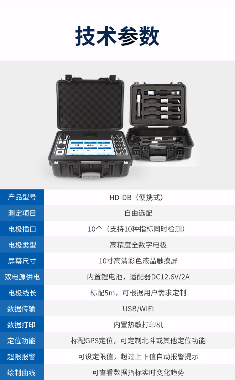 HD-DB電極法便攜式多參數水質檢測儀搭配數字式傳感器和光學傳感器,可對pH、ORP、濁度、余氯、溶解氧、電導率、TDS、鹽度、溫度、懸浮物、污泥濃度、葉綠素、藍綠藻、COD、氨氮、氯離子、硝酸根、透明度等十幾種指標進行快速測定,便攜式設計,內置鋰電池,適合野外水質快速檢測,廣泛應用于地表水、市政排污、工業廢水、污水處理、水產養殖的水質檢測。